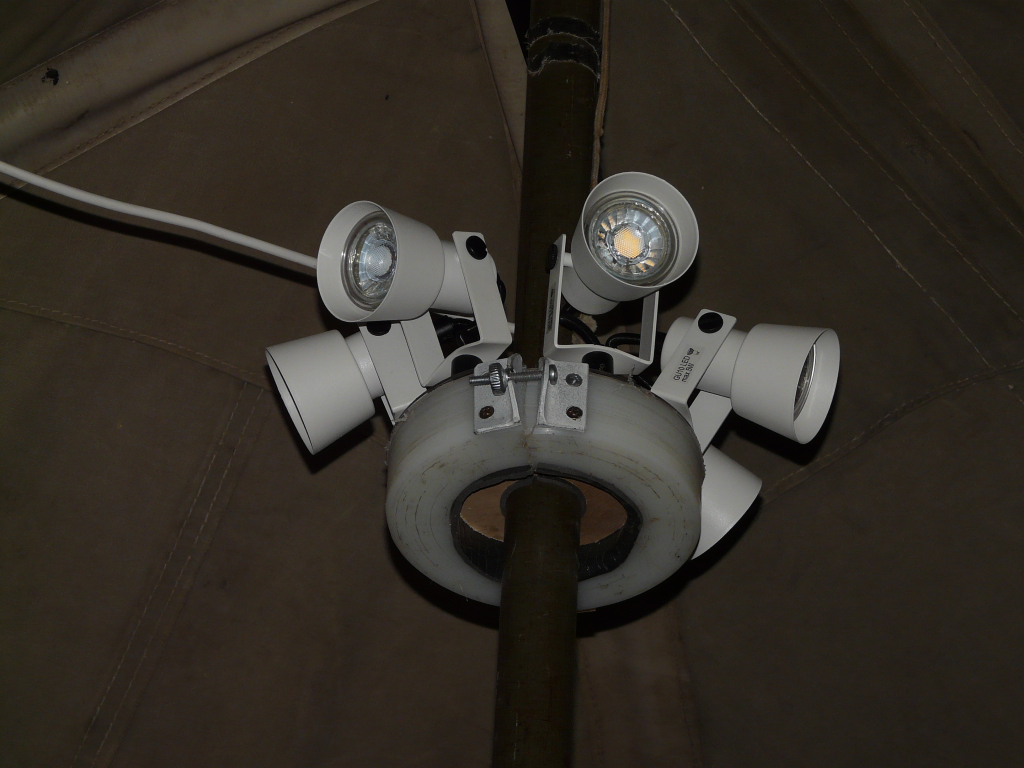 Osvětlení vhodné pro beduínské nebo vojenské stany kde je v prostřed jeden nebo více středových podpěr. Světlo se rozevře kolem stožáru a opětovně sepne v potřebné výšce.